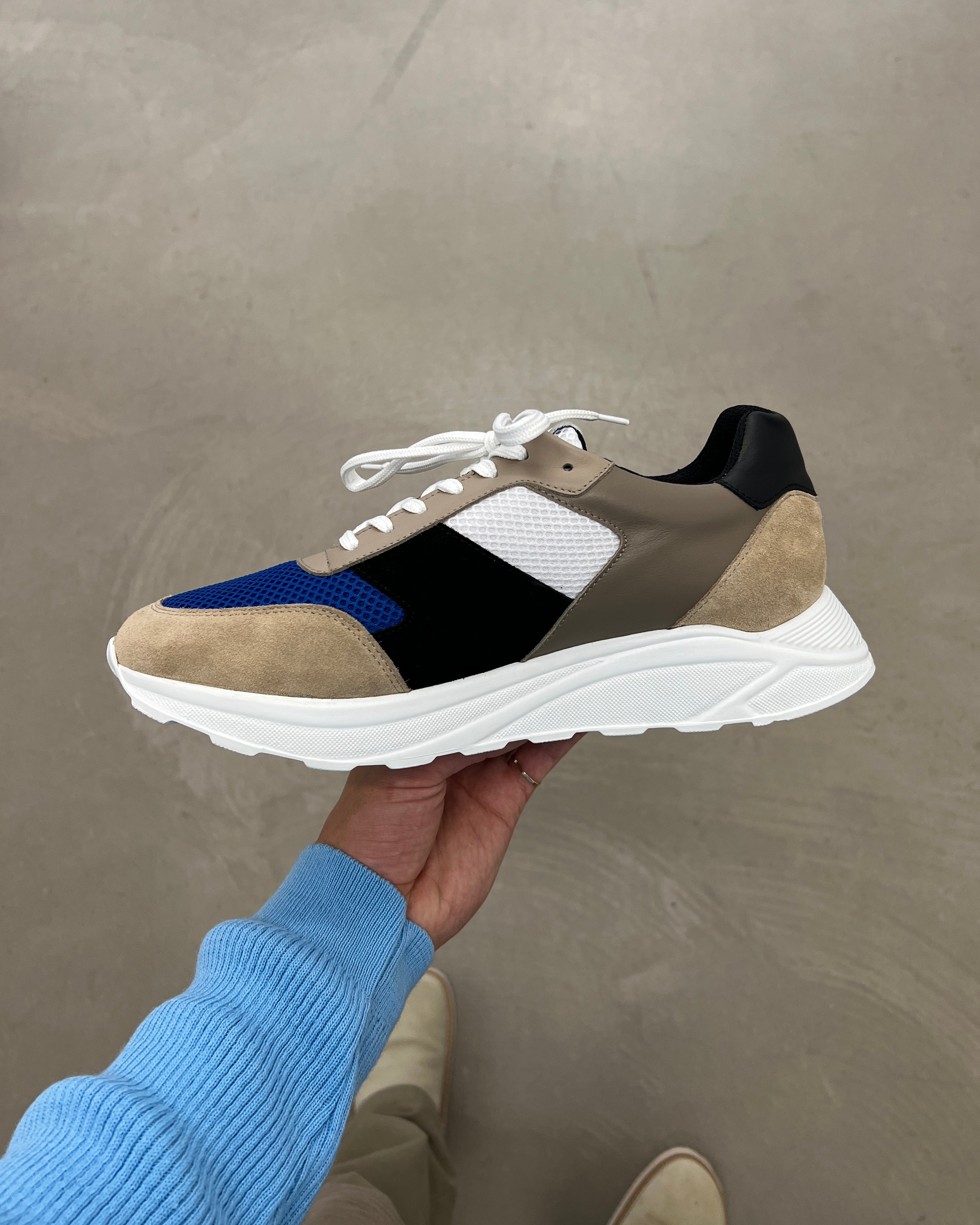 Crafted with a layered combination of soft suede and breathable mesh, the silhouette balances texture and structure while maintaining a lightweight feel. The neutral palette keeps the design versatile, making it easy to integrate into any wardrobe.