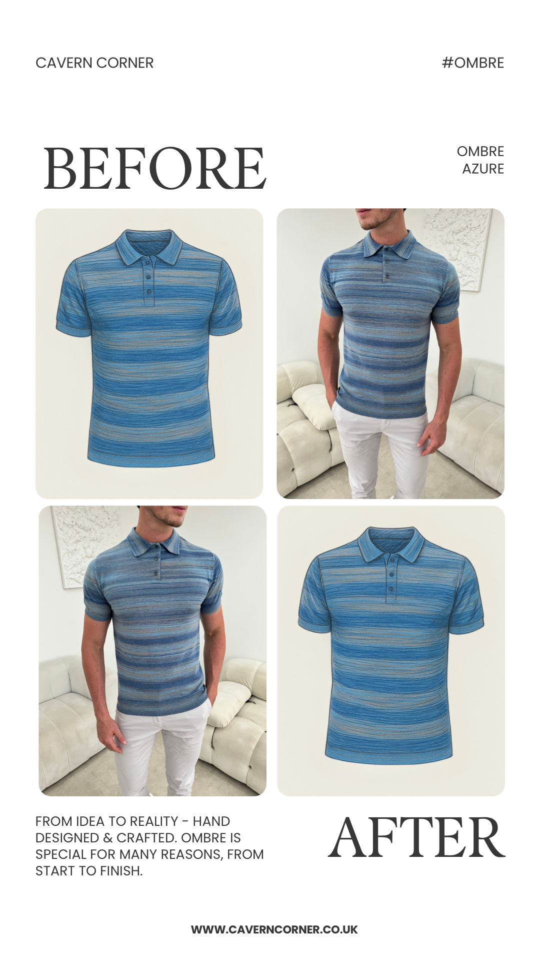 Welcome to the Azure Ombré polo shirt, a stand out item, that cannot be found anywhere but here. Have you ever seen a product finished in Ombré Pattern? we have pioneered a brand new look to the menswear industry, enjoy looking confidently unique and be the first to enjoy this brand new look. This specific colourway has sold out multiple times, don’t be last.